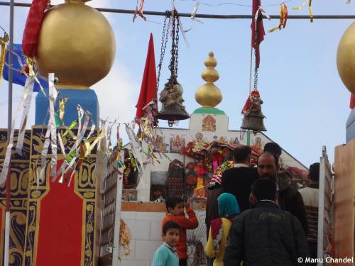 The roofless temple of Shikari Devi has the idols of Goddess Durga sitting on a lion,Goddess Kali, 64 yogini and demi hero (Kamarunag Devta). There are some other images of local gods sitting behind the image of Goddess Durga in this temple premises. Goddess Durga in this area is popularly known as “Shikari Devi”.
