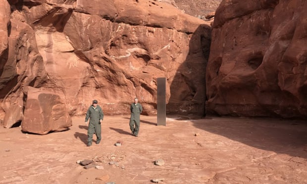 US officials said that the metal monolith, that was first spotted in the Utah desert on 18 November, has been removed. Photograph: Utah Department of Public Safety/EPA